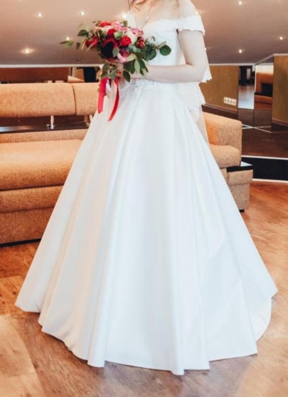 Весільна сукня Люкс якості 2020 року Купувалась у весільному салоні за значно більші кошти Не вінчана Після хімчистки Сукня оброблена мереживом та атласом. Колір світлий шампань, Розмір 46-48, корсет регулюється На зріст 165 підбори 13,5 см. В комплекті під'юбник з кругами Стан відмінний на 5 Торг доречний, реальному покупцю подаруночок
