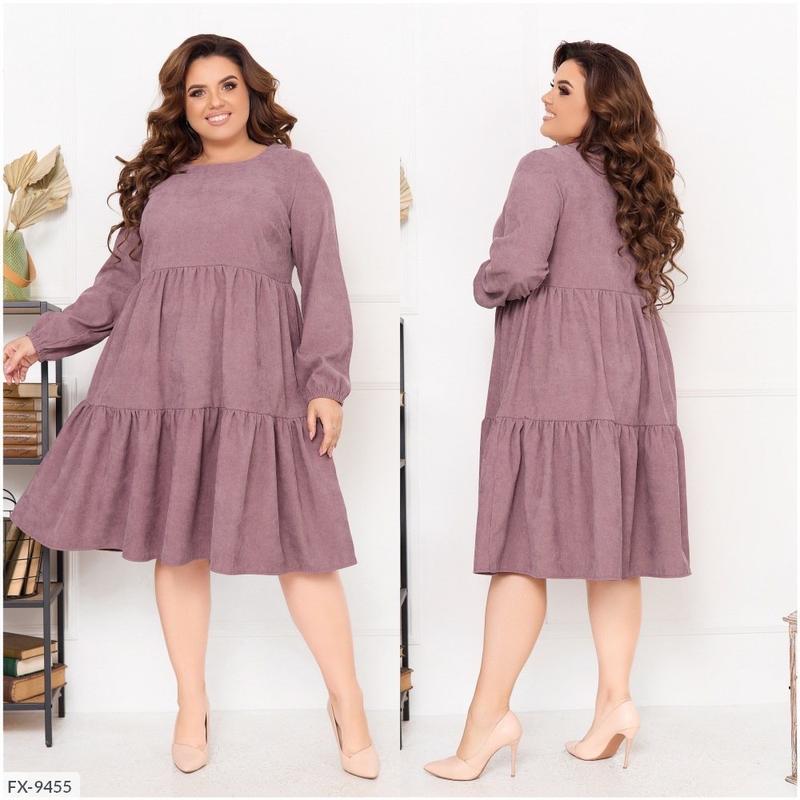 Сукня FX-9465 Цена: 935 грн. Размеры: 48-50, 52-54, 56-58, 60-62, 64-66 Тканина: мікровельвет (не мнеться). Цвет: Фрез Серый Пудра Красный Зеленый Черный Марсала Длина платья: 104, 106, 108, 110, 112 см. Длина лифа: 39, 40, 41, 42, 43 см. Длина рукава: 62, 62, 62, 63, 63 см. Обхват рукава: 37, 39, 41, 43, 45 см. Замеры готового изделия: 48-50 ог 102 от 104 Про 160 52-54 ог 110 от 112 О 170 56-58 ог 118 от 120 о 180 60-62 ог 126 от 128 о 190 64-66 ог 134 от 136 Про 200 Стильное повседневное платье из микровельвета (ткань растяжимости не имеет). Вырез горловины круглый, рукав длинный, низ рукава собран на резинку. Юбка платья состоит из двух ярусов. Застежек, карманов нет