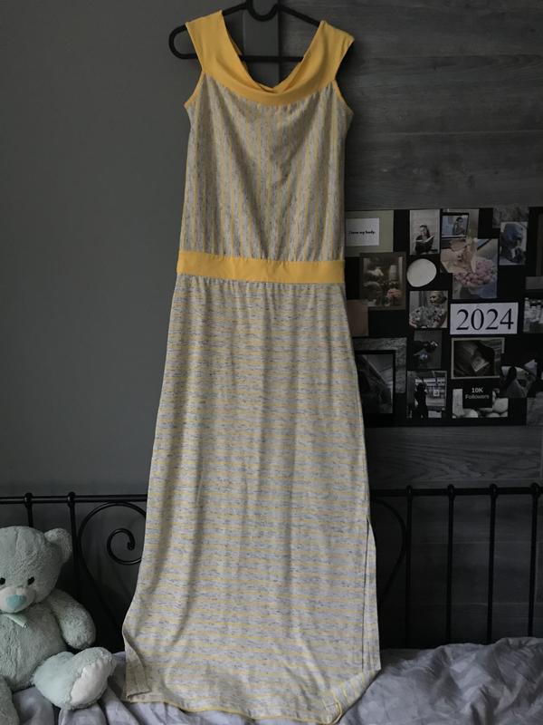Длинное прямое летнее платье, красиво ложится по фигурке. Замеры;: ширина по линии комди 47 см, ширина по талии 40 см, общая длина платья от плеча до низа 143 см. По бокам есть разрезы. Состояние отлично!
