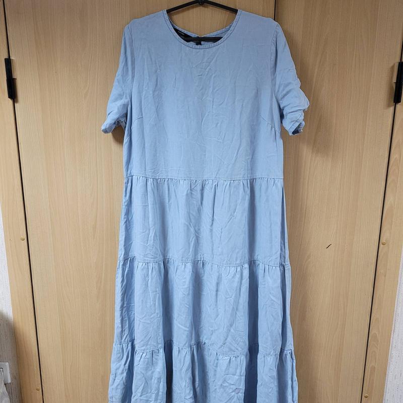 Ярусное платье большого размера, вываренный Катон, светло-голубое. Ог 116, Об 140, рукав 23, длина 127. Без бумажной этикетки. сток люкс.
