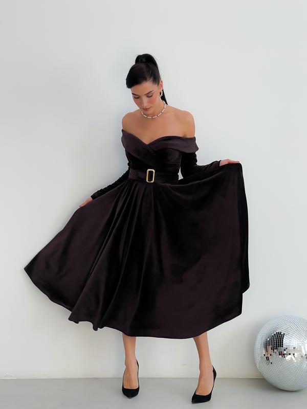 Довга сукня з оксамиту Гарна посадка та якісний пошив Вздовж спини прихована застібка-блискавка Сукня з карманами Додаткові фото сукні можу скинути Відсутній пасок з сукні