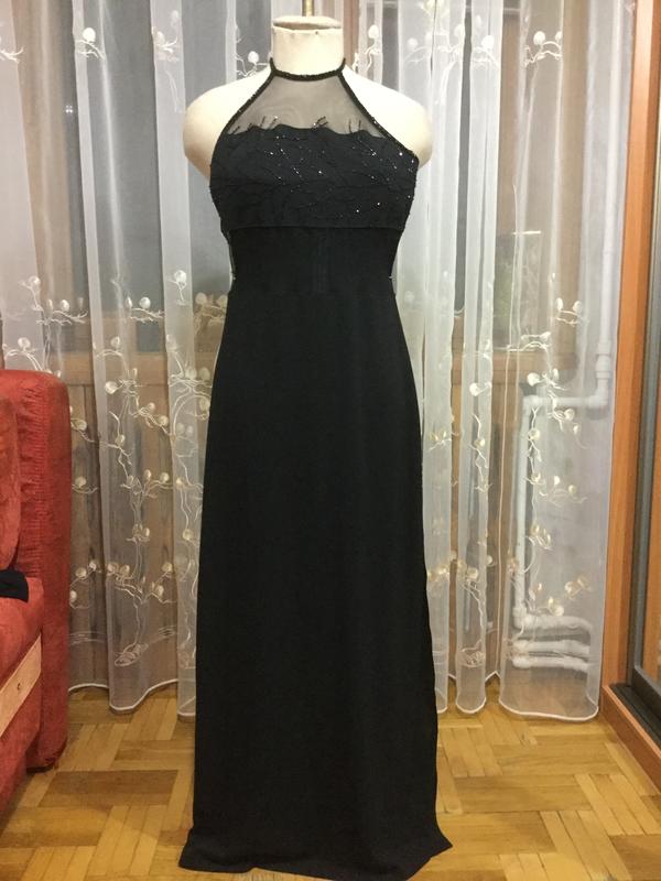 Продам довге вечірнє плаття плечі і спина відкриті. Область грудей прикрашена бісером, ззаду по лінії спини виріб на блискавці. Стан новий. НОГ- 45см НОСтегон - 47 см. Тканина тягнеться. Довжина спідниці від лінії талії - 95 см.