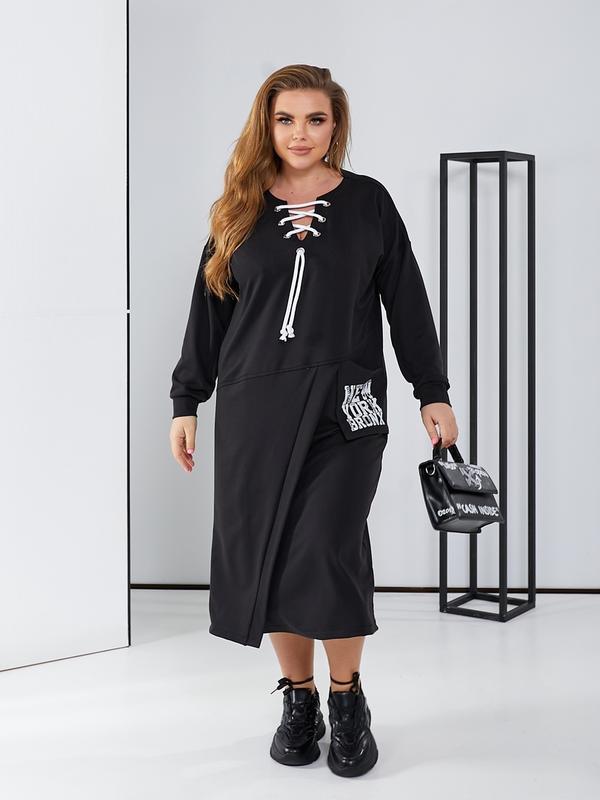 Розміри: 48-50, 52-54, 56-58 Тканина: двонитка (добре тягнеться) Кольори: чорний, джинс, графіт, м'ята, винний, мокко Стильне плаття в спортивному стилі з цікавою шнурівкою, кишеня декорована накатом. ог: 114/122/130 см ос: 112/120/128 см Довжина сукні по спинці: 117/117/118 см Довжина рукава від горловини: 71/72/74 см vm