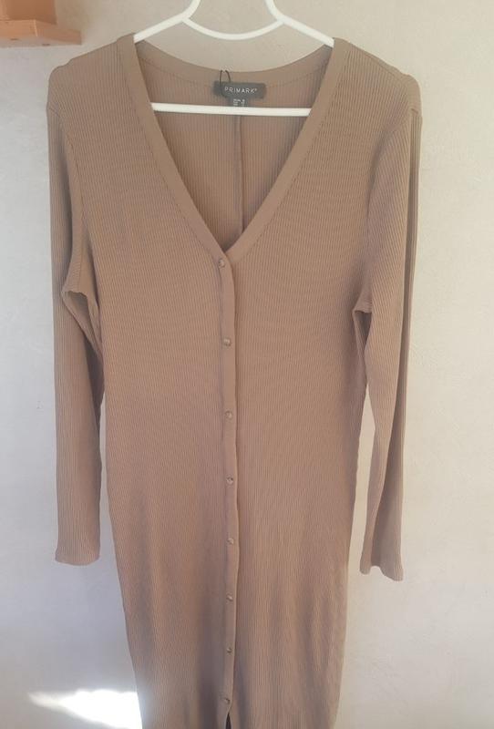 Платье в мелкий рубчик, новое, тянется хорошо. Цвет тауп, кофе с молоком, мокко, фото не передает. Замеры: длина - 123 см, плечи - 42 см, рукав - 63 см, ПОГ - 47 (58) см., ПОТ - 39 (55) см., ПОБ - 43 (59) см