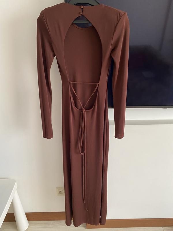Невероятно красивая, остановка обнажена,размер от колена, слегка просвечивает, новенькое,без бирки,купировала себе но немножко не угадала с размером (( красивый шоколадный цвет,фото так не передает.длин 140).