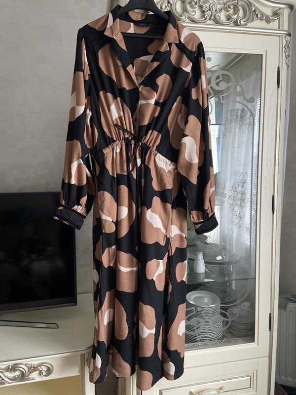 Платье британского бренда в идеальном новом состоянии по бокам разрезы, врезные карманы, пояс стягивается на шнурке ( можно регулировать размер) плечи 40, пог 60, рукав объемный на манжете 67, длина 128