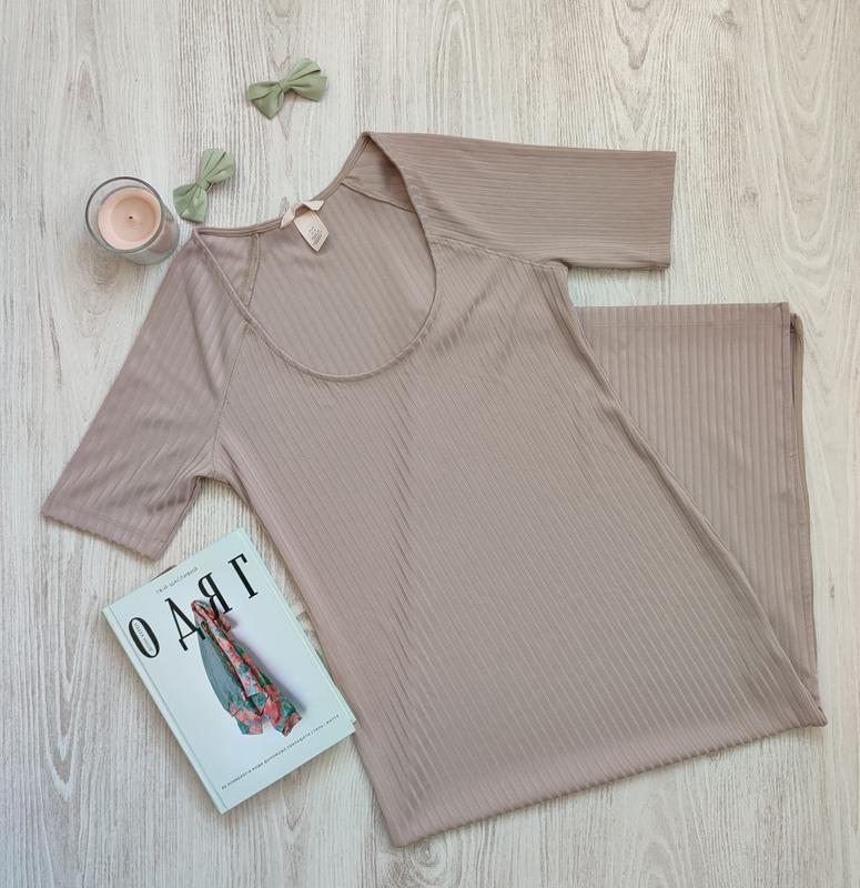 Актуальне плаття з тканини в рубчик, колір "капучіно", ідеально лягає по фігурі, тримає форму: ПОГ - 42 см, ПОБ- 47 см ( на 2-4 см потягнеться),довжина 114 см.
