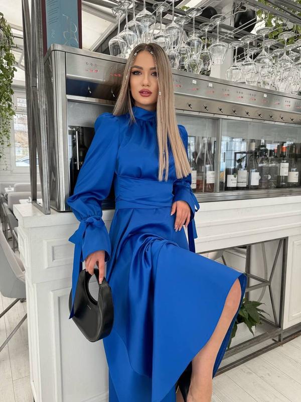 Сукня ✨ Мод. 1074 Тканина : Шовк Скарлєт Розміри : 42-44 , 46-48 Кольори : синій Ціна : 1500грн