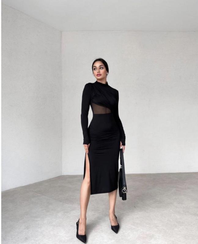 Розмір 42, 44, 46, 48 • Тканина - мікромасло • Кольори -чорний • Виміри Обхват грудей 42р-80см,44р-84см 46р-88см,48р-92см Обхват талії 42р-60см,44р-64см 46р-68см,48р-72см Обхват стегон 42р-80см, 44р-84см 46р-88см,48р-92см Довжина 42р-113см,44р-113см 46р-115см, 48р-115см Рукав 42р-63см,44р-63см 46р-64см,48р-64см • Тканина - мікромасло • Кольори -чорний Довжина розрізу 35см Повна оплата на картку
