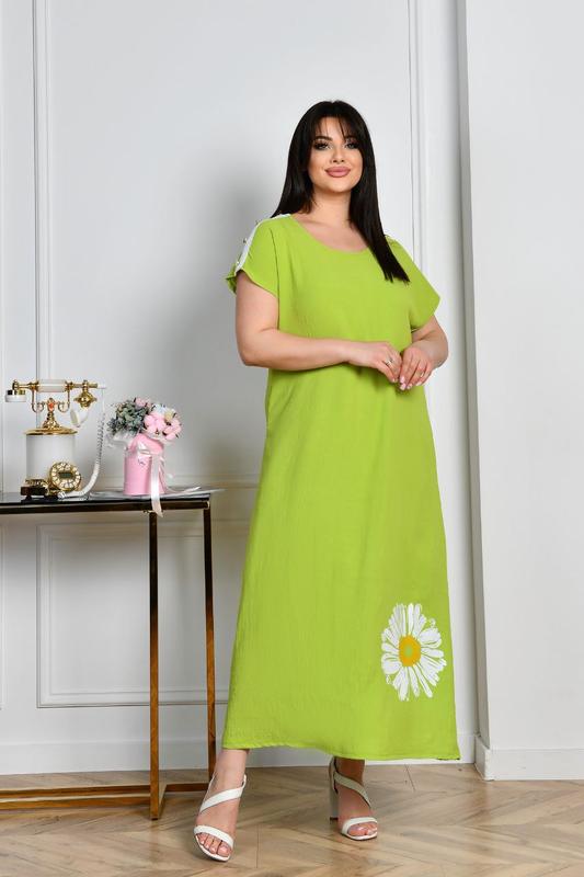 Новинка Платье Ромашка Модель 1257 Ткань американский креп жатка Цвет лайм.т.синий.хаки.электрик Размеры 48-50.52-54.56-58 Отделка на плечах пришивные золотые пуговицы