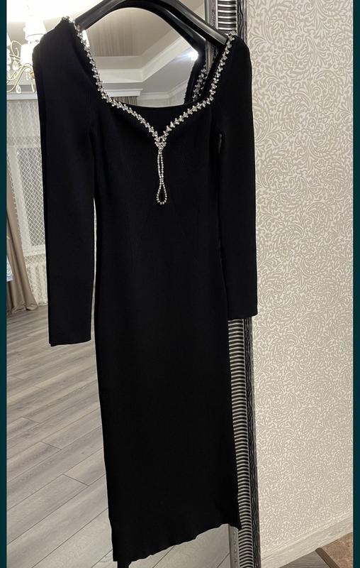 Шикарное черное силуэтное платье self portrait миди длины .Очень красивое декольте с декором из страз.Невероятно красиво садится Премиум Размеры с,м