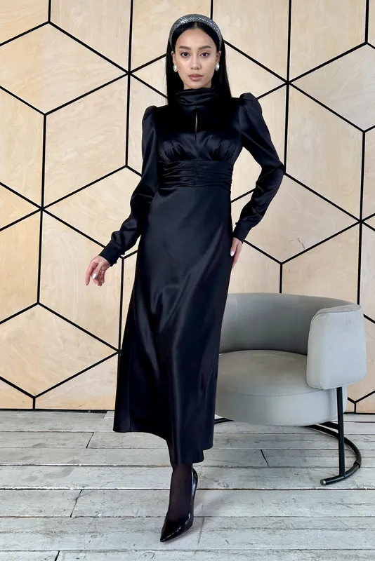 Чорна атласна сукня з відкритою спинкою довга сукня з атласу