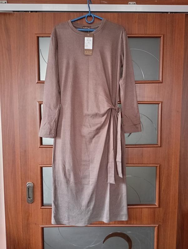 Платье из очень приятного мягкого трикотажа. Длина 110 см, пог 46 см, оригинально связывается сбоку, что скрывает животик.