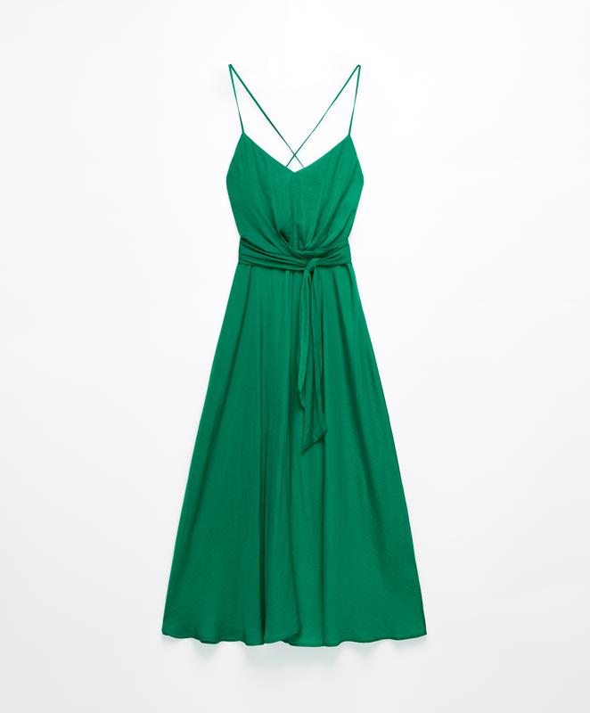Зеленое сатиновое длинное платье oysho платье миди на тонких бретелях