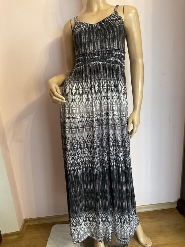 Симпатичное качественное платье. Без подкладки. Тянется. Без дефектов. Замеры в груди 44-47 см в талии 36-39 см в бедрах 70 см длина 143 см.состава нет похожего вискоза или полиэстер 26:3;24