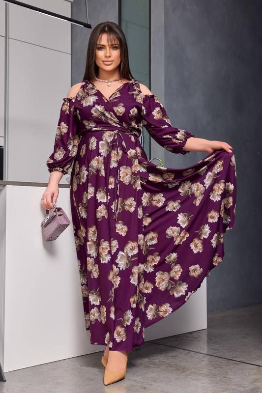 Платье макси Арт 05636 🔥Цена 1300грн Материал - софт шовк (легкая, приятная, ткань)длина 143см, одевается на запах, перепонками по лифу можно регулировать декольте. Юбка полусонце красиво ложится по фигуре. Нет сборки на талии, не внесет. 💥48-52 - на ОГ 96-105, ОБ до 125 💥54-58- на ОГ 107-118, ОБ до 135 💥60-64 - на ОГ 120- 130, ОБ до 150 💥66-70- на ОГ 132-142, ОБ до 170