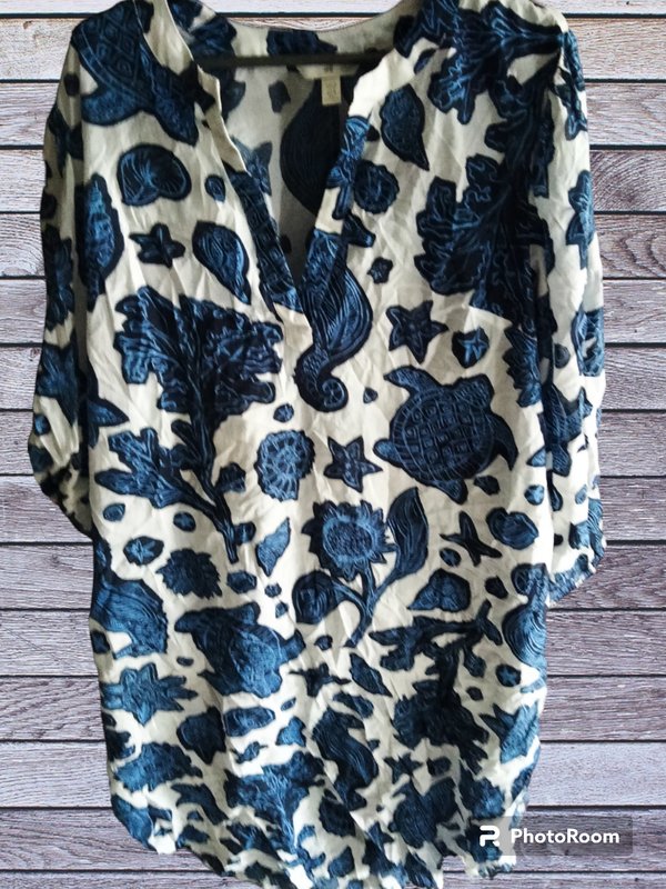 Тоненькая невесомый хлопок, буферные рукава, разрезы + асимметрия, принт морская тематика. ПОГ 58 Д 110/115