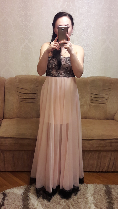 Дуже гарне плаття. Дуже зручне. Фото в живу ще краще. Довжина десь 135 см Талія(завищена) 34 см тягнеться добре.