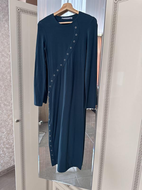 Сукня максі кольору морської хвилі з розрізом, який регулюється кнопками, українського бренду, куплене у Всі свої. Одягалась 2 рази