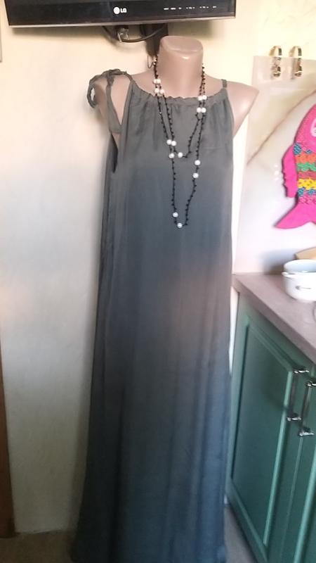 очень стильное платье сарафан, длинное, подойдёт высокую даму, 100% шовк, подкладка 100% вискоза, невероятная вещица на жару, пог 54см, максимум воно не тягнеться, без торга, с кнопкой купить не работаю, смотрите мои обьявления, много шикарного товара