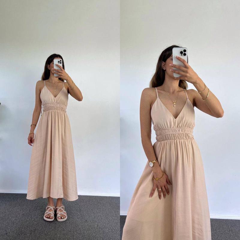 Артикул: 933-078 Колір: чорний, беж, хаки, молоко Розмір: 42-46 (універсал) Матеріал: креп-жатка Багатофункціональна сукня на літо, без підкладу, не світить