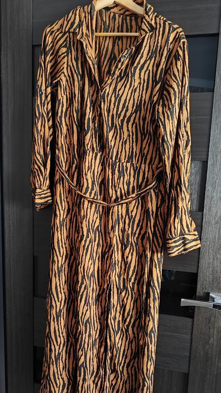 ✅Шикарное длинное платье с леопардовым принтом и разрезом. рукав можно подвернуть Париж ‼️Состояние: ИДЕАЛ 📐Размер 16/евро 44...наш 50-52 Длина 140-142 Ширина под подмышками 56.5 Пояс 49 Рукав 60 Плечи 44 Линия Бедра приблизно 57