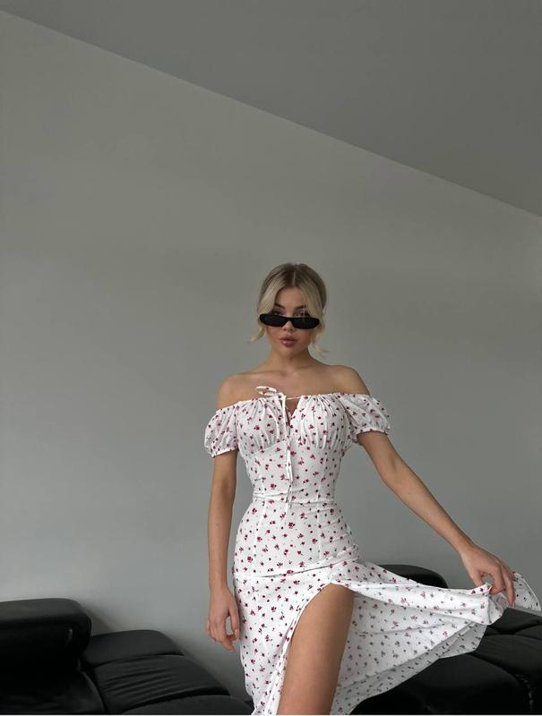 Сукня Арт.231 Ткань: качественный софт Размер: 42-44, 44-46 Цвет: белый, зебра Идеальное базовое платье миди самого универсального кроя, которое подчеркивает талию, и красиво открывает ключицы рукав на резинке и кулиска на комди