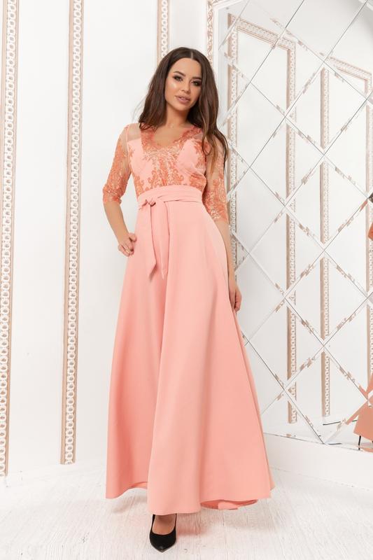 Длинное платье нежного персикового цвета на свадьбы, выпускное, освоё