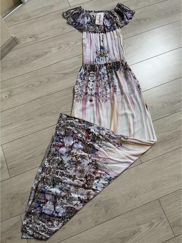 Сукня довга натуральна штапель віскоза відкриті плечі максі сарафан плаття літнє квітковий...