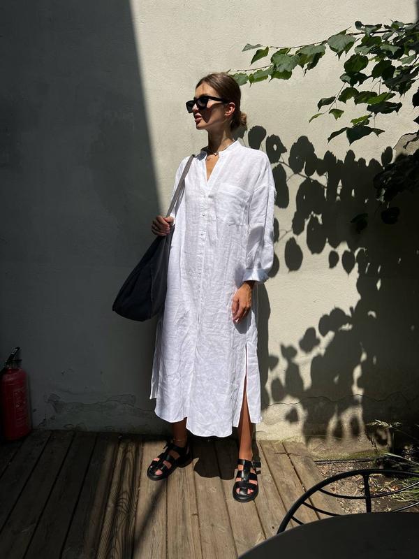 Удлиненная рубашка Мод: 420 Материал: 100% натуральный лен Размер: единый 42-48 Цвет: белый, хаки Цена: 2450грн