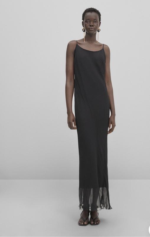 Сукня Massimo Dutti. Розміри S, M, L. Склад; 100% віскоза, підкладка: 100% поліестер. Заміри S: обʼєм грудей 90 см, обʼєм талії 80 см, обʼєм стегон 100 см, довжина 170 см. Заміри М: обʼєм грудей 94-96 см, обʼєм талії 90 см, обʼєм стегон 102 см, довжина 175 см. Заміри Л: обʼєм грудей 100 см, обʼєм талії 92 см, обʼєм стегон 104 см, довжина 180 см