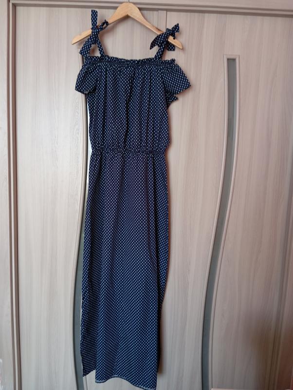 Платье новое, но бирка срезанное,меет небольшой рукавчик, поверх и талия на резинке, по низу разрезы -30 см, длина -139, талия -33/51, поб.грудей -57, поб.стэгон -60, по низу -70.