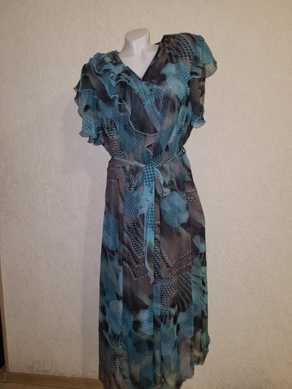 Длинное шифоновое платье бирюзово-серого цвета, на подкладе, измерение на фото