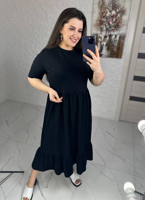 680 грн 🔥🔥🔥НОВИНКА, ЛИТНЯ КОЛЕКЦИЯ Модель: 039VK.578 Размеры: 46-48;50-52;54-56;58-60 Цвет: черный Ткань: турецкий кулир Платье из турецкого кулира очень хорошего качества, не кашлатится, приятное на ощупь, держит форму. На талии сборка и по низу платья сборка, что дает очень красивый объем Параметры модели батал: Ог 112, Вот 80, Ос 112, рост 165(на ней представлены размеры 50-52)