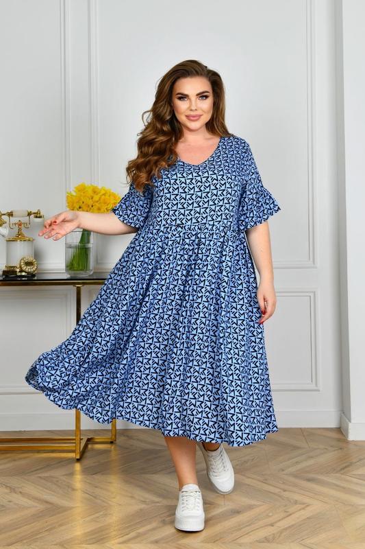 НОВИНОЧКА Платье Модель 1018 Летнее воздушное платье из натуральных тканей. ▪️Свободный крой ,не обязывающий стиль, создаёт максимальный комфорт в движениях Ткань: Штапель Размер: 54, 56, 58, 60 (полномерки) иренвел 850.00 грн Замеры 54: ОГ-114, ОБ-224, Длина-108 56: ОГ-118, ОБ-224, Длина-108 58: ОГ-122, ОБ-228, Длина-110 60: ОГ-126, ОБ-228, Длина-110