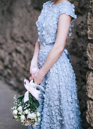 Нежное голубое платье в цветок выбитый. Подойдет ко многим событиях: свадьба, выпускной или значимое событие. Состояние идеальное, надевала один раз на фотосессию. Пишите по всем вопросам.