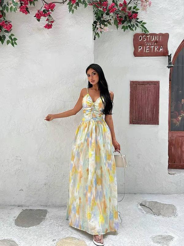 Платье длинное с цветным принтом