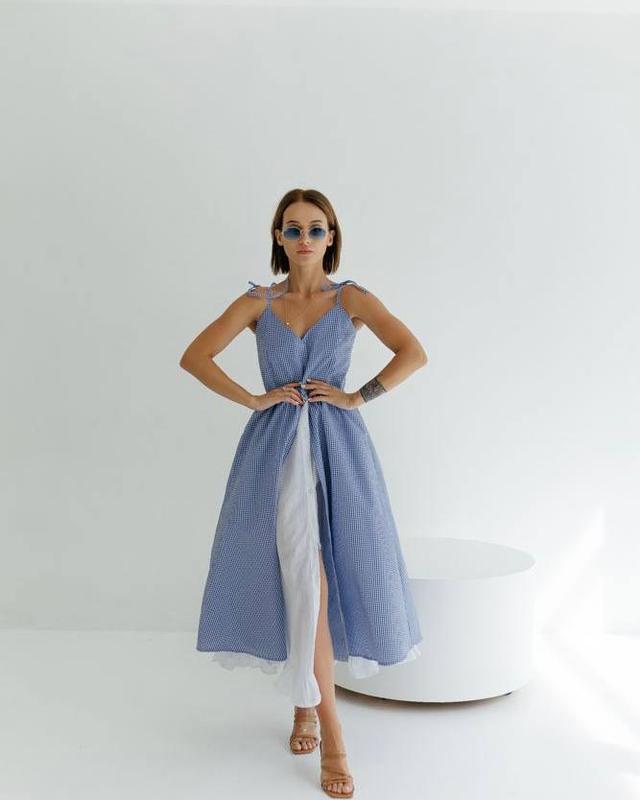 20799 katrina сукня довга сарафан на завязках синя з білим підкладом бавовна і батист