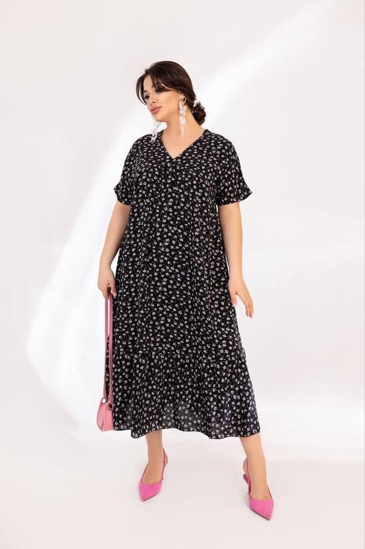Платье свободного кроя из приятной ткани. Модель 2330 Р-ры: (48-50),(52-54)(56-58) Тканина: штапель Кольори :в ассортименте Замеры: Обхват груди (48р-50р)-112 см (52р-54р)-122 см (56р-58р)-132 см Длина изделия (48р-50р)-125 см (52р-54р)-126 см (56р-58р)-127 см Длина рукава (48р-50р)-34 см (52р-54р)-35 см (56р-58р)-36 см рус 840.00 грн