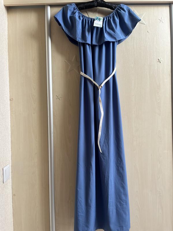 Сукня максі літня вільного крою сарафан в підлогу довге плаття волан рюша відкриті плечі