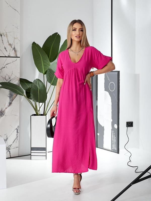 Сукня Модель 812 🔸Ткань: классная люкс»жатка-лен « Платье миди из легкой ткани жатка-лен. Модель с рукавом -фонариком и эффектным v- образным вырезом на груди, также есть разрез на ноге, который подчеркивает красоту ног.Расклешонок крой юбки, создает романтичное и легкое настроение. Под данное платье подойдет разная обувь! 🔸Размеры: 42-44,46-48 🇺🇦Произведено в Украине 🇺🇦