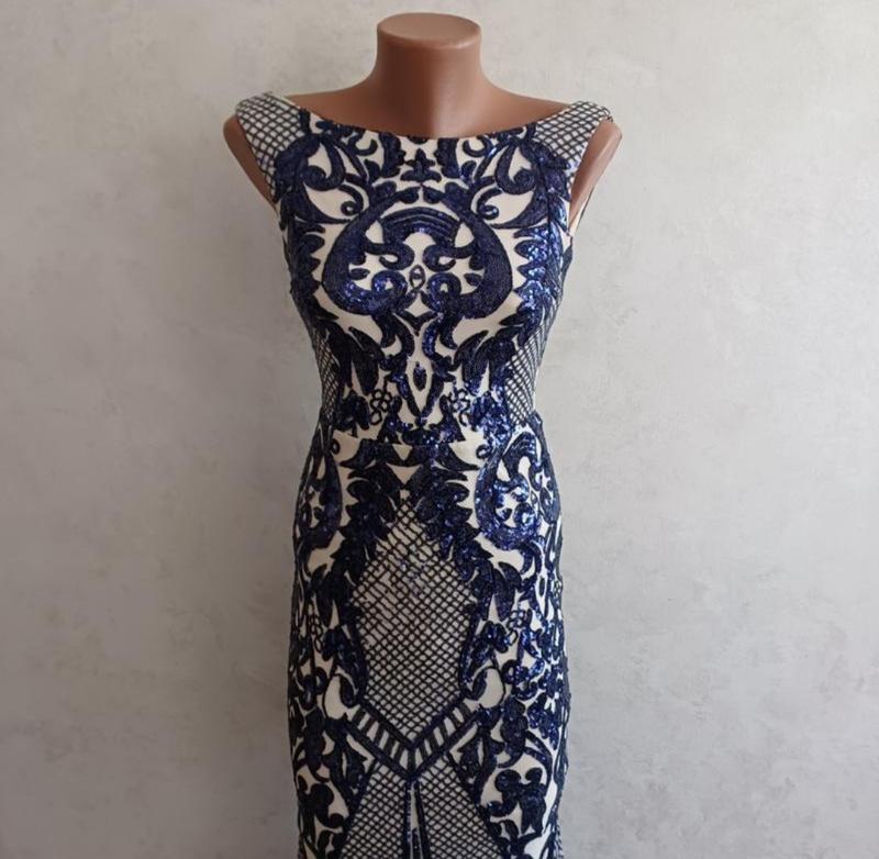 Продам вечірнє плаття. У поєтки. Розмір С. Дуже гарно виглядає на тілі. Плаття у дуже хорошому стані, є маленький нюанс на фото показано, трошки повідпадали поєтки