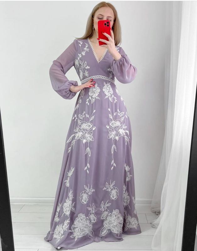 Сиреневое платье с вышивкой