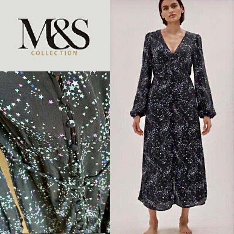 Неймовірно красива і ніжна максі-сукня в маленьких зіницях від M&S. Розмір вказаний: 12, красиво сідає на М (на фото одягнено на М, зріст-168 см.) Основний колір: чорний