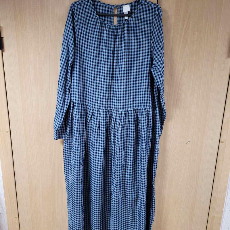 Длинное вискозное платье, сзади на пуговке, возле горловины чуть присборено.Цвета серо-голубой, черный.Новое, без бумажной этикетки. Люкс сток. Ог 112, талия 112, Об 190, рукав 63, длина 125.