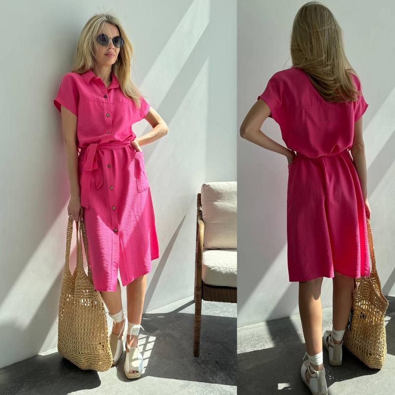 Сукня Мод. 0362 Тканина: льон жатка Размер: 42-44, 46-48, 50-52 Цвет: пудра, розовый, трава, серый, бежевый, голубой, оливка крап 840.00 грн Элегантное платье свободного кроя с боковыми накладными карманами и застежкой на пуговицы - идеальный выбор для комфортной и стильной повседневной носки. Рукав цельнокроеный, короткий, со спущенной линией плеча, обеспечивающей удобную посадку, пояс съемный, фиксируется шлевками в боковых швах, подчеркивает женственность и утонченность образа