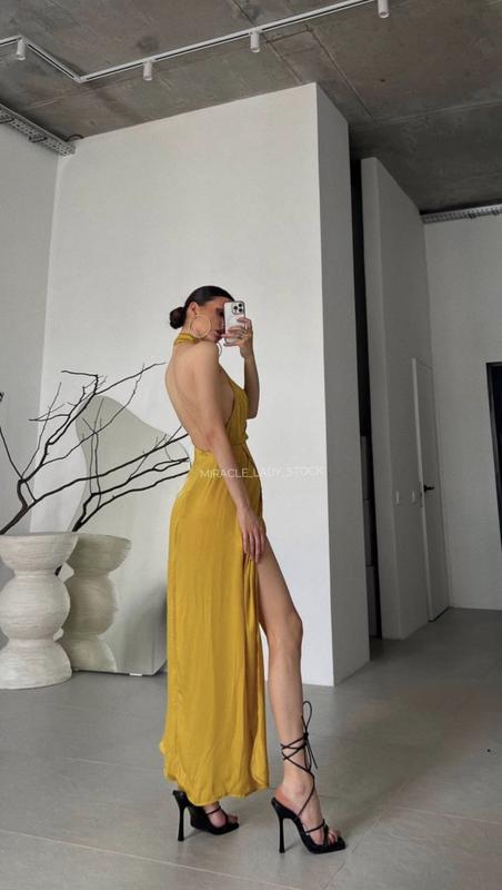 Очень красивое платье горчичного цвета Выглядит очень эффектно ( открытая спина ) Размер с/м (10)