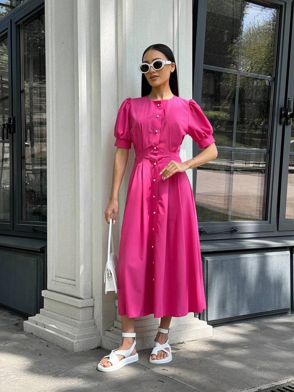 Мод 8080nika Размеры: 42-44, 46-48 Тканина: софт Цвета: беж, голубой, малина Романтичное платье в длине миди на пуговицах, платье идеально прогулочное и свидательное! Отличное качество