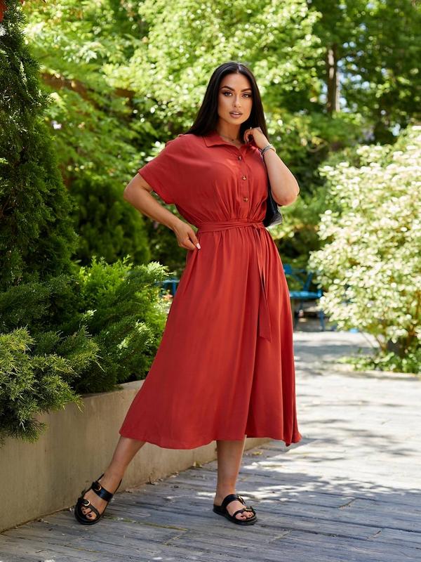 ✨Сукня ✨Модель №4409-204 ✨Цена: 1050 грн ✨Размер:46-48,50-52,54-56 ✨Тканина:штапельний льон (склад 100% бавовна) натуральна,струменева тканина ✨Цвет:теракот ✨Платье с карманами, кулиска- резинка, вшитый поясок, можно завязывать спереди и можно сзади,пуговицы функциональные Замеры: Размер 46-48 ог-120+,от-72/110,ос-150,длина-124,рукав-36 Размер 50-52 ог-130+,от-82/124,ос-160,длина-128,рукав-38 Размер 54-56 ог-140+,от-96/134,ос-170,длина-135,рукав-38 #сукня