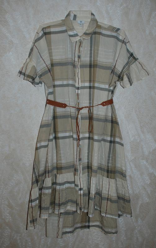 Платье легкое, принтованное бренда River Island /90% хлопок/свободный крой/ Размер указанный 48/4ХL/56 ( Крой оверсайз можно и на размер 46/3ХL/54 - 44/ХХL/52) (упражняйтесь по замерам) Замеры: Длина по спине- 132см (в самой низкой точке) Длина спереди - 116см (в самой низкой точке) Ширина по плечам - 86см ( плечи приспущены) Длина рукава от горловины- 45см ПО рукава/бицепс - 22см ПО груди - 82см ПО талии - 92см (по талии можно регулировать пояском) ПО низу - 123см Состав: 90% хлопок Доставка: отправка товара после оплаты на карточку Приватбанка возврата и обмена нет, поэтому внимательно смотрите замеры в объявлении и делайте покупки осознанно!
